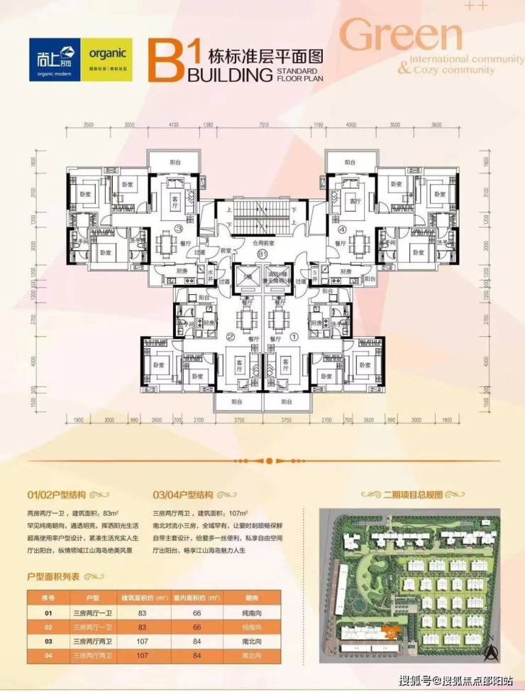洋房【户型优点】:两梯四户、方正实用、高层、户户朝南