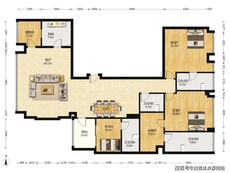 3套房4卫+超大客厅超+大餐厅+2阳台