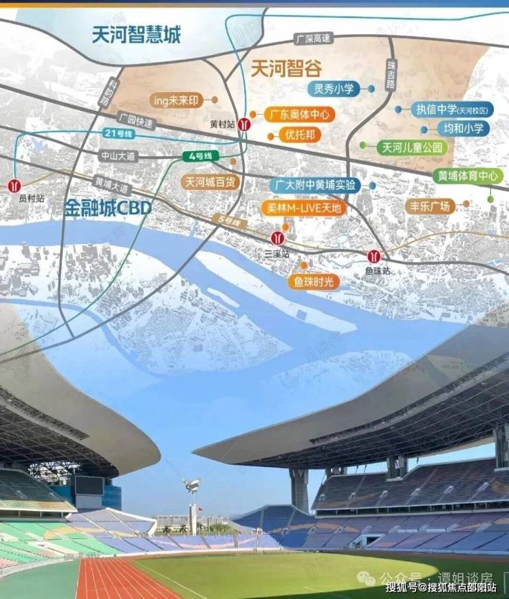 项目位于天河智谷片区奥体东牛奶厂板块,严格来讲属于吉山板块,紧靠黄埔,紧挨着广园快速旁,背靠天河智慧城和金融城,正处广州科技中轴的天河中央科创区(CTD),与珠江新城、金融城中央商务区(CBD)双核驱动区域发展,金融、科技两大王牌引领区域打造湾区人才高地。