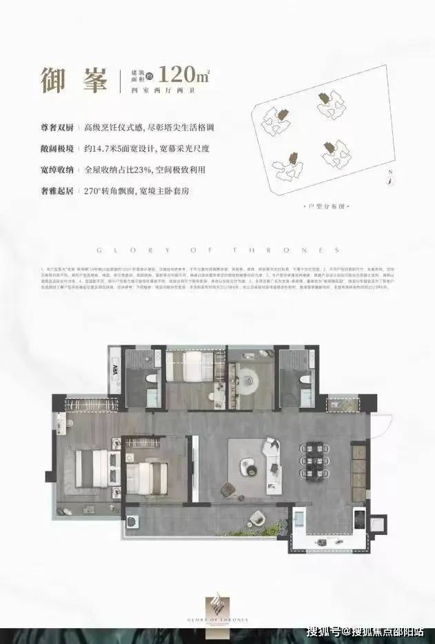 120㎡的4房2卫,折后总价412-456万/套,单价3.46-3.81万/㎡。