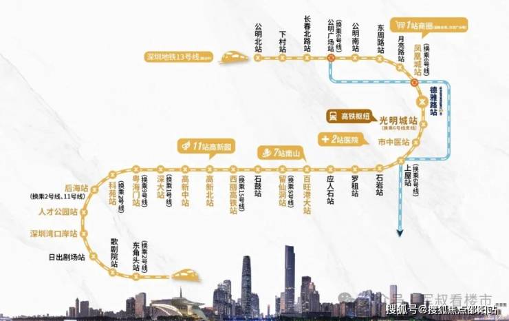 地铁13号线(在建中):最优黄金科创线,7站南山,直达南山留仙洞、科技园、深圳湾,高效通勤线路