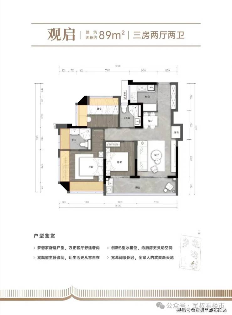 户型:建面约80-110㎡三到四房两卫