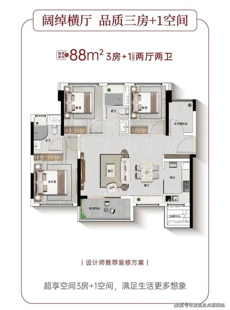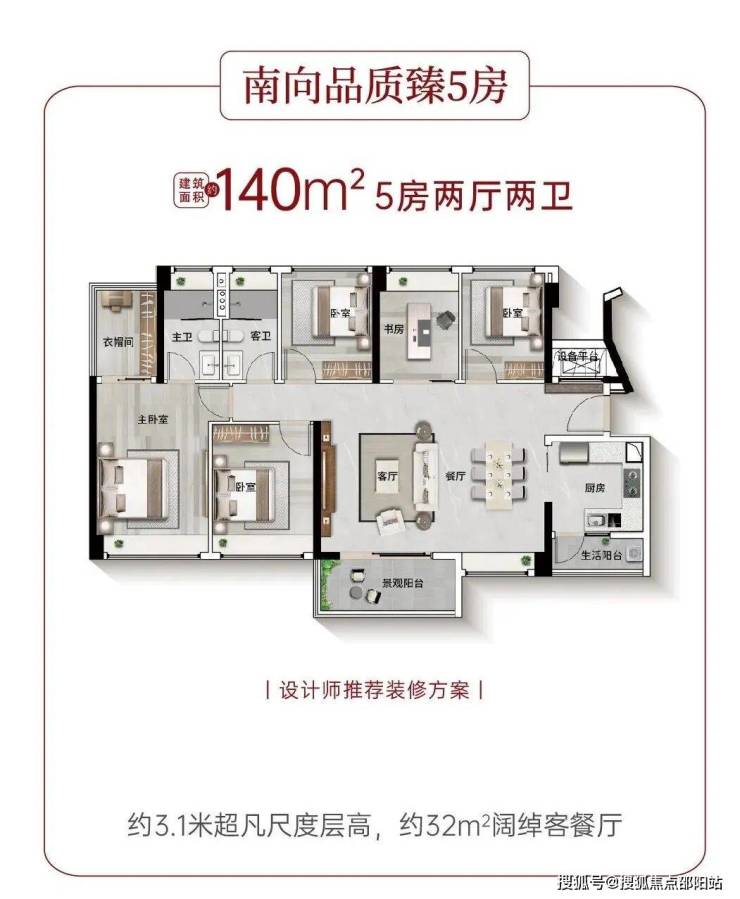户型的迭代升级,带来的不仅是空间尺度的跃升,更是生活质感的全面焕新。建面约88-140㎡南向阔景舒居,以尺度与巧思,重构理想生活的模样: