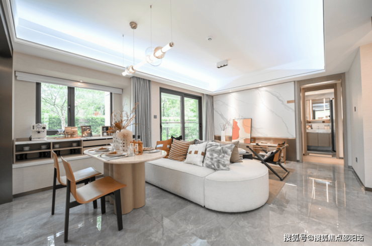 三开间朝南,清风与阳光自由穿梭,呼吸尽是鲜氧,推窗即览园林景致,客厅衔接观景阳台,在阳光漫溢的空间里,家人围坐闲聊或亲友小聚,从容惬意。