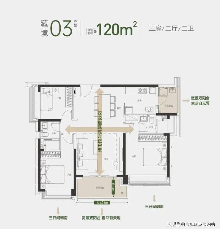 两梯两户,专梯入户,南北宽境四阳台,270°观景面