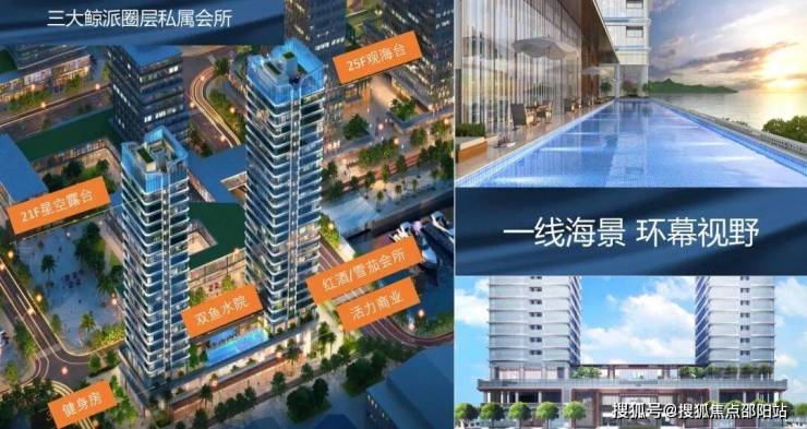 【三大尊享领域 打造精致生活形态】鲸派圈层会所——健身房、雪茄房等会所,打造圈层名流奢享地;云端私密花园——独具设计特色,会客、派对、观景一应俱全;空中无边际泳池——无边框视觉效果设计,对望星辰大海。