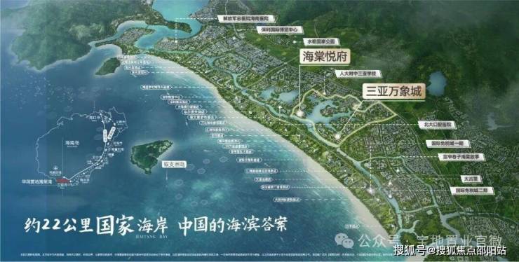——国家海岸 汇聚全球度假资源——三亚海棠湾被定位为“国家海岸”,作为世界级的旅游度假区和度假天堂,承载国家热带滨海旅游品牌形象。规划"一点·一带·三区",约22公里黄金海岸线坐拥千亿级的娱乐、休闲、康养、购物、教育等资源配套。