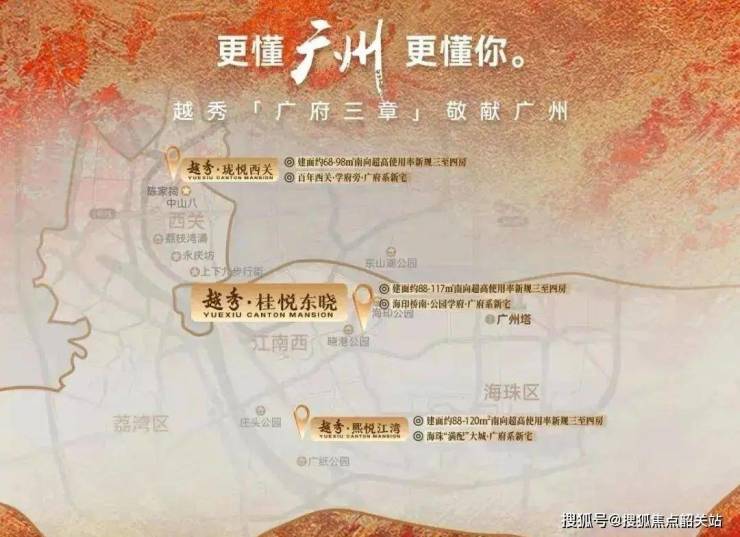 广州国企越秀|2021-2023年连续三年冠领广州,更懂广州;2023年海珠新房市占率越秀超52%市占率,更懂海珠;匠著越秀地产海珠4.0广府系产品,更懂你(数据来源:克而瑞)