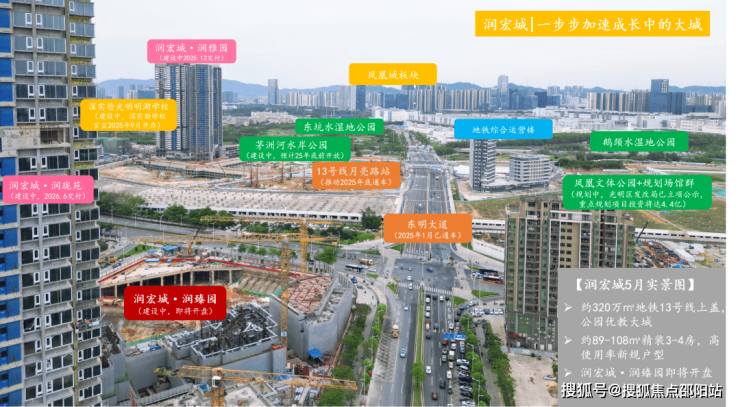 润宏城附近的月亮路站已封顶,从该站出发,1站可达凤凰城,9站到南山。