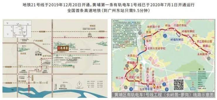 地铁21号线20分钟直达天河,黄埔第一条有轨电车就在家门口,全国首条高速地铁强势规划中,未来到广州东站只需9分钟。