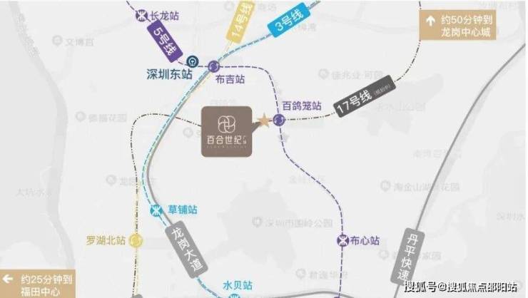 【交通】百合世纪广场紧邻地铁5号线百鸽笼站(步行约100米),且未来规划有17号线罗岗站约450米在此交汇通过地铁5号线,1站可换乘3/14号线,4站直达福田核心区,7站快速通达深圳北站。1 公里接驳龙岗大道,2.5 公里直达丹平快速。