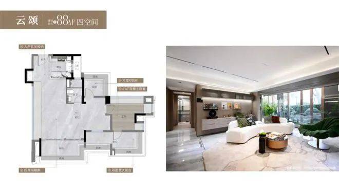 约25%阳台率,建面约88-105㎡全南向宽奢4空间