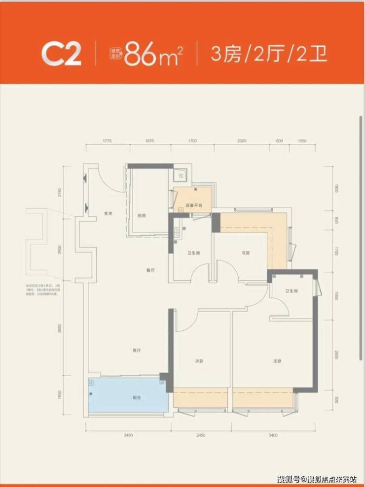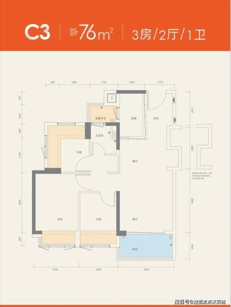 竖厅格局,客厅3.4米开间,3个卧室分别做到了主卧10.99㎡/次卧7.3㎡/次卧5.91㎡,还带1个设备平台,赠送面积高达12.71㎡,实际得房率约97% 含赠送,西南/东南或西北朝向。
