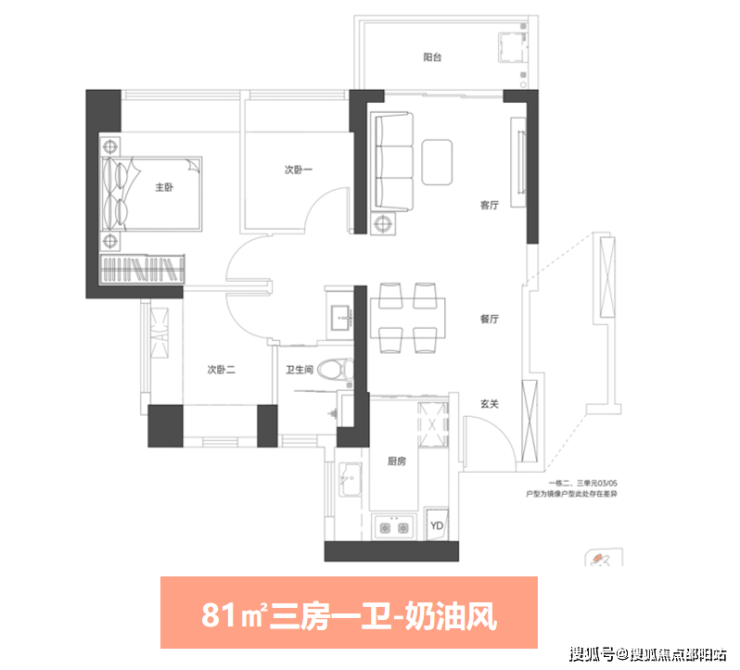 约81㎡3房1卫:约310-360万(折后单价约4万起)💢