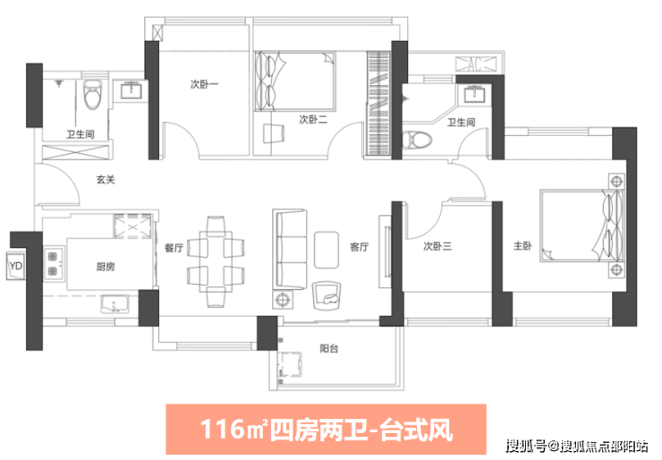 约116㎡4房2卫:约580-640万(折后单价约5.2万起)