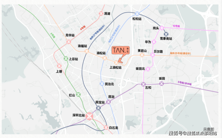 直线距离地铁25号线(一期)上油松站(建设中)约100m,同时25号线(建设中)与4号线、22号线(建设中)、27号线(建设中)交汇,未来从上油松站出发,可实现一站一换乘,快速畅达南山深圳湾超级总部基地、福田CBD、坂田华为基地、罗湖等核心区。