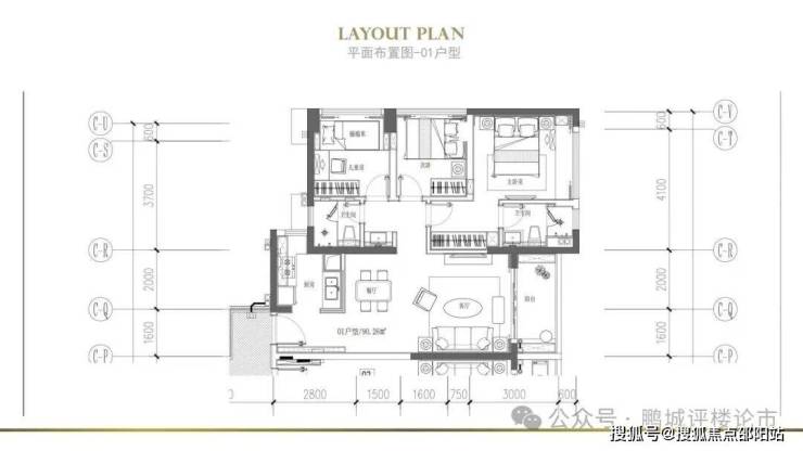 🔻建面约90㎡(或89㎡)——01户型(东向)