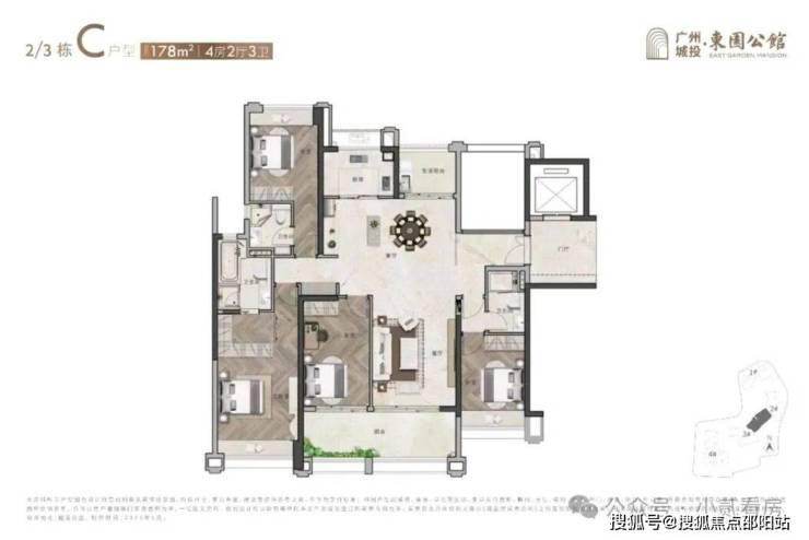 项目不大,一共有4栋,其中,4#为政府规划用房,只有1#、2#、3#对外销售,都是21层小高楼,专梯专户的设计,专属电梯直接入户,归家体验既私密又充满仪式感,除了1栋是五梯五户之外,另外2栋都是四梯四户,产品一共有7个户型,91㎡-178㎡的三至四房为主,总货量仅249套。