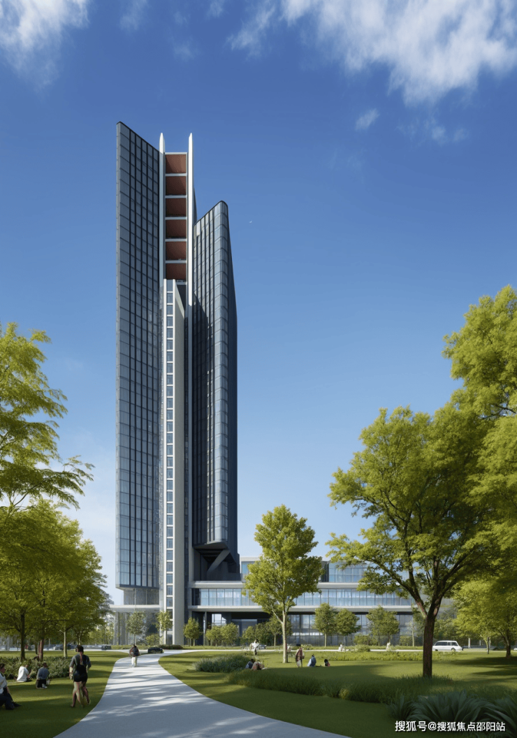 •「建筑构成:」一座250米超高层写字楼(10万㎡)、两栋180米可售型人才住宅 (7万㎡)和一个三层购物中心裙楼