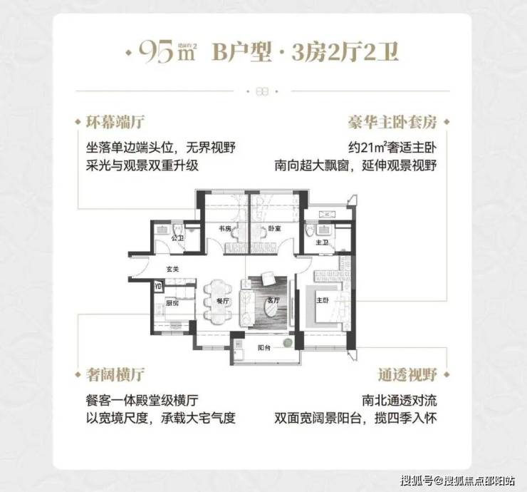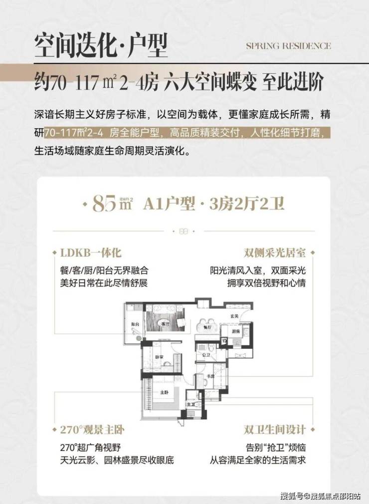 本次首推的主力中的主力。在85㎡面积段做到三房两卫,功能性极强。如果客厅开间能做到约3.3米,主卧带独立卫浴, 对房间数有硬性要求、预算在300-330万左右的家庭相当友好。