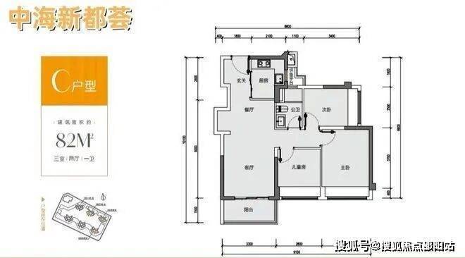 82㎡的3房2厅1卫,设计的是竖厅格局,客厅3.3米开间,S墙体设计预留双开门冰箱位,动静分区,三开间朝南,3个卧室宽度分别为3/2.8/2.5米,得房率:88.87-90.61%(包含赠送),L型厨房,阳台进深1.5米,朝西南或东南向。