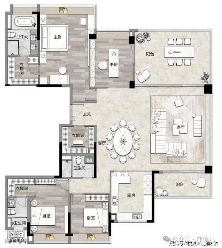 约50㎡的空间,总边长 6.5米的L型全景飘窗,长约5米的步入式衣帽间、星级酒店专用的黑科技满满的独立卫浴。
