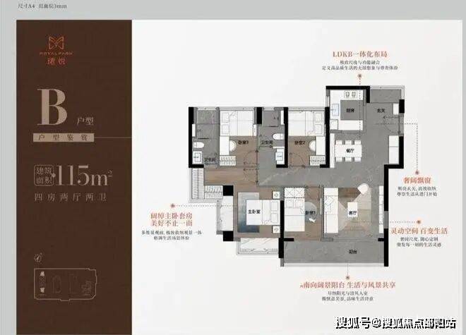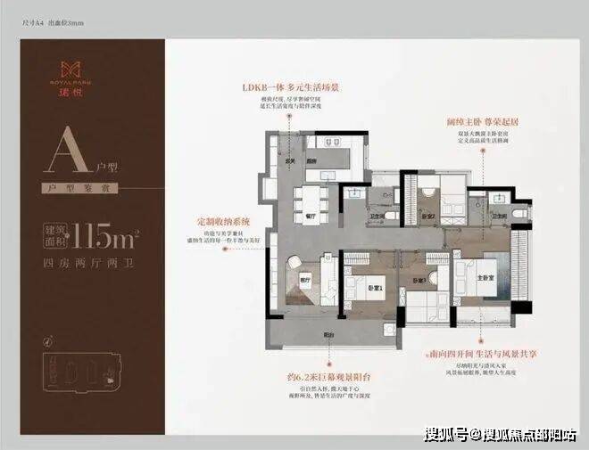 115㎡奢阔4房,总价716万起,有俩个户型仅可售85套