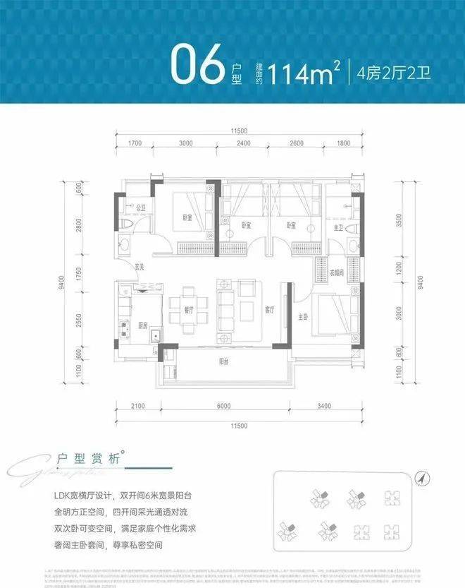 约114㎡4房2卫(1/2/3/4栋06户型)