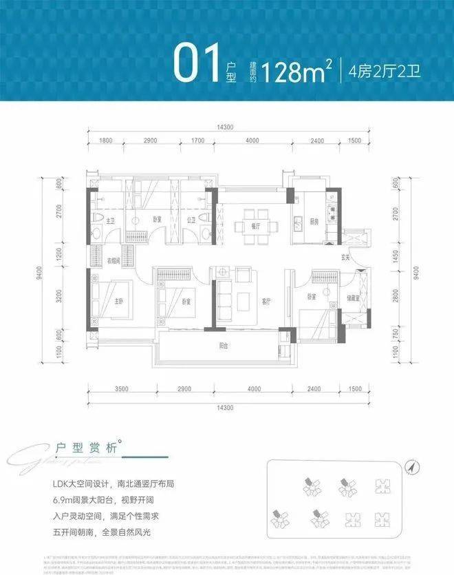 约128㎡4房2卫(1/2/3/4栋01户型)