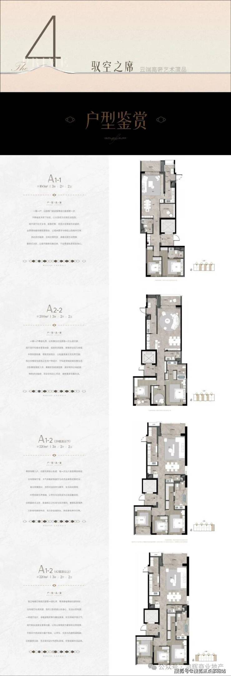 A座:建筑面积约160-220㎡2-3房(南北通透,专梯入户)