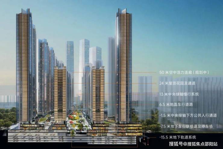创新打造地上地下七重结构立体化交通系统,不同交通系统分层互联,人行系统、城市公共道路系统、地下轨交系统快速接驳,最大程度实现人车分流,科学化疏解交通压力。