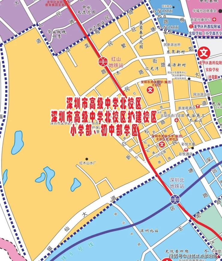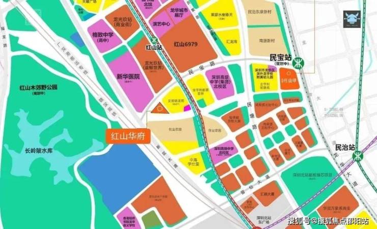 红山华府位于新区大道与民宝路交汇处,距离地铁4号线红山站约400米,旁边即是深圳新华医院。红山板块是龙华的中央居住区,龙华最热门的置业区域,片区配套完善,居住氛围浓厚。