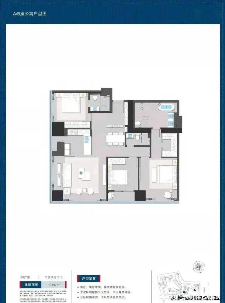 公寓197平户型三房两卫: