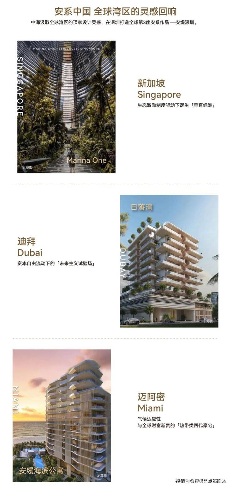 在建筑设计上,项目跳出深圳湾传统公建化豪宅思路,融合新加坡垂直绿洲、迪拜超未来主义、迈阿密度假风三大国际豪宅风格进行打造,在会所、景观园林、室内空间上也将延续北京、上海同类产品的顶奢配置标准。在精装标准上,参考北京安澜、上海安澜的顶豪定位,以及深湾玖序约14.3万/㎡的均价,安缇雅苑作为不限价的“安系”首作,预计价格将进一步拉升。