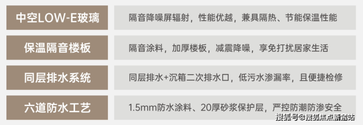 精益求精,高标准打造中空LOW- E玻璃、保温隔音楼板、同层排水系统、6S安防系统等,减少生活困扰,精工品质筑家,致敬美好生活!