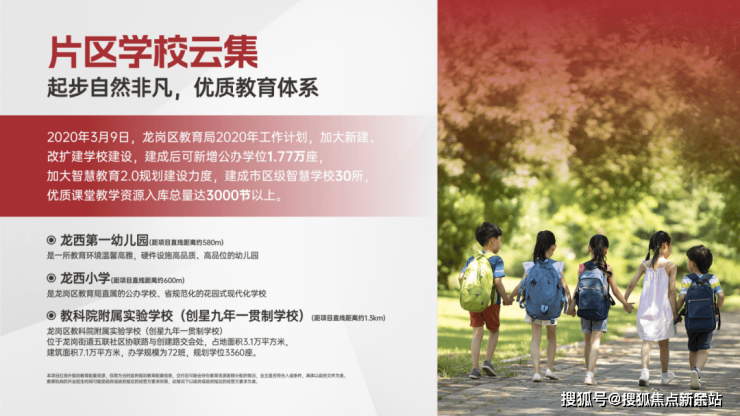 3、本宣传资料对项目周边幼儿园、学校等教育资源的介绍旨在提供相关信息,并不意味着我方对就学安排作出承诺。教育资源的名称、办学性质、办学规模、学位设置、开学(班)时间、招生条件、收费标准及招生区域存在调整的可能,应以政府教育主管部门及办学方颁布的政策规定为准。