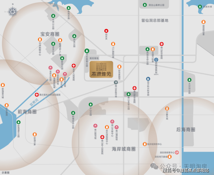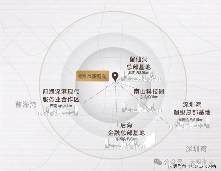 💎前海深港合作区(西南向约4km):定位国家战略性门户枢纽,未来将打造成世界级城市新中心,规划就业人口约65万人,居住人口15万人。