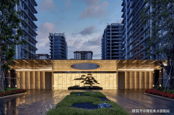 五星级酒店归家主入口:臻选天然透光石材,搭配名贵罗汉松,迎接归家风雅礼序,彰显业主身份地位。