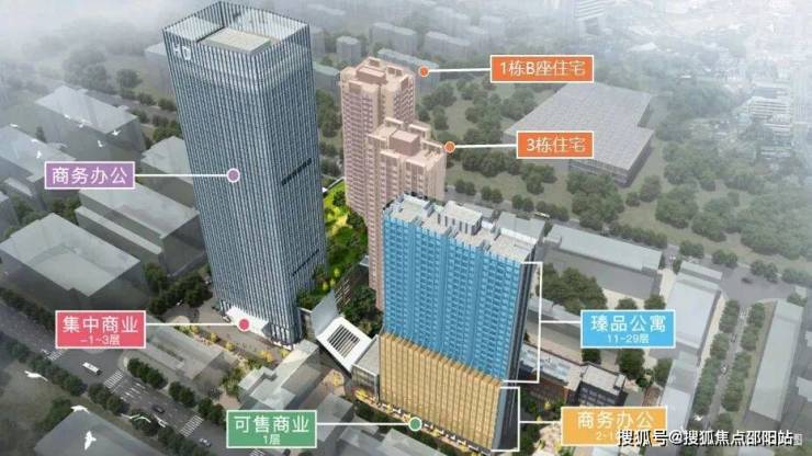 项目是集公寓、办公、住宅、商业等为一体的都会综合体,由4栋建筑组成,1A栋商业,1B栋住宅,2栋公寓,3栋住宅。