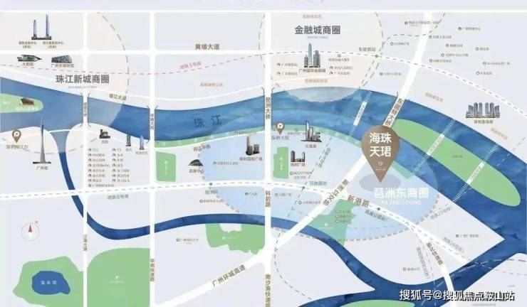 保利招商·海珠天珺位于珠江南岸,基地周边现状为低层、多层建筑,属海珠区琶洲东板块。