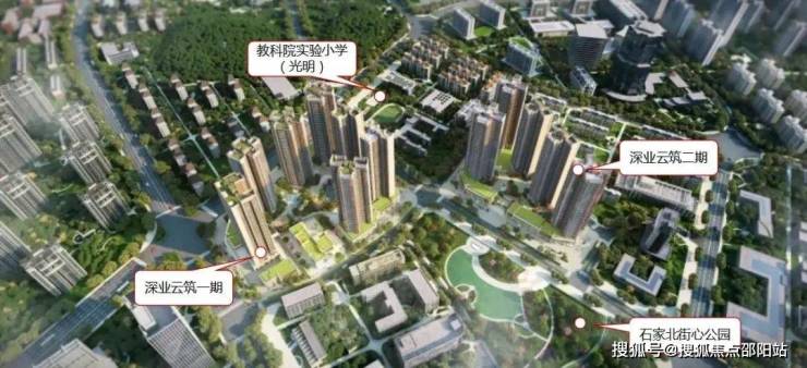 另两个象限分别布局深圳市教育科学研究院实验小学(光明),以及前文提到的石家北街心公园(在建中)。