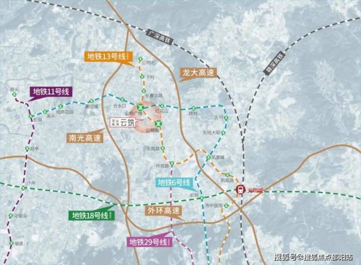 而未来光明还将进一步强化轨道交通的建设,持续布局地铁18、29等线路,进一步丰富深业云筑业主的出行选择。