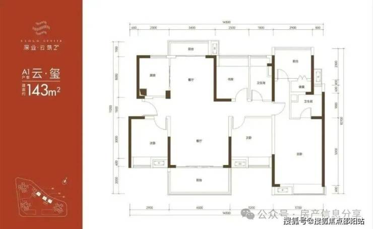 143㎡的5房2厅2卫,折后总价479-540万/套,单价3.36-3.8万/㎡。