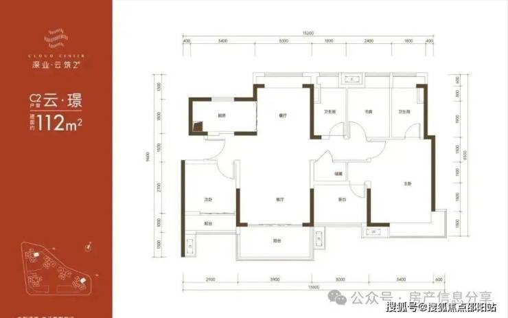 112㎡的4房2厅2卫,折后总价326-374万/套,单价2.9-3.33万/㎡。