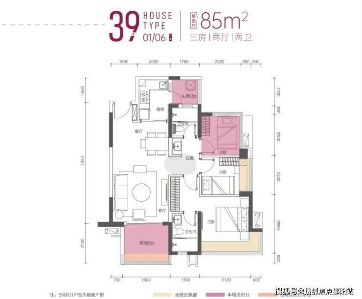 85㎡三房两卫(36、38、39栋户型基本一致)
