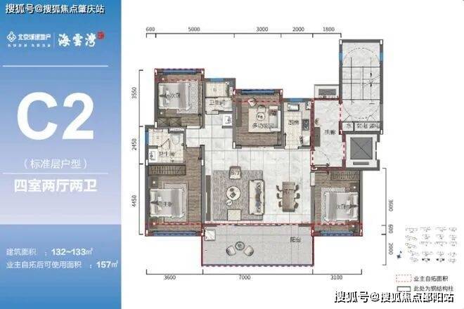 设计亮点:户型设计以大开间横厅为主,如 B1 户型采用一字横厅设计,有 8.1m 阔景阳台,山海大境尽收眼底;C1 户型有 270° 观景望海双阳台,主卧私享 270° 阳光露台;A1 户型横纵通透双厅双阳台,南向三开间采光充足;A2 户型三大开间朝南,6.8 米双联阳台捕捉舒心与惬意;C2 户型四室大宅,南北通透,近 7 米宽境双厅连阔绰阳台开怀揽景。