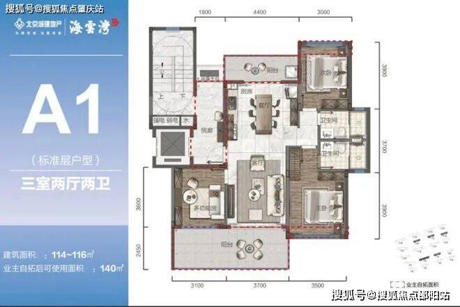 产品品质:纯板式建筑,现代简约风格,建筑质量和设计水平较高,装修标准为 3000 元 /㎡的精装修,可直接拎包入住。