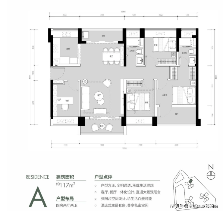 约117㎡户型做到了真四房+全明通透,可满足三代同堂及成长型家庭所需。