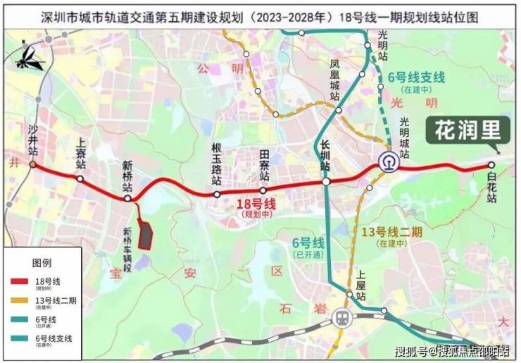 【地铁18号线】1站直达光明城站,换乘13号线(在建),6站到南山;