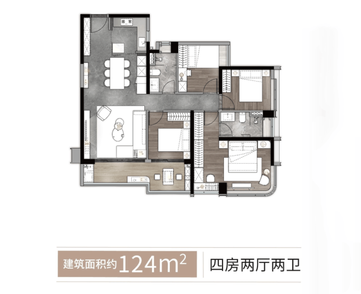 270°环幕视野,四开间南向望江,畅享约12m拥江景观线;LDK客餐厨一体化设计,无分界通透聚厅;L形江景阳台,约6.9m面宽,最大进深约2m;行政套房式主卧搭配独立衣帽间,收藏江景生活的多重想象。
